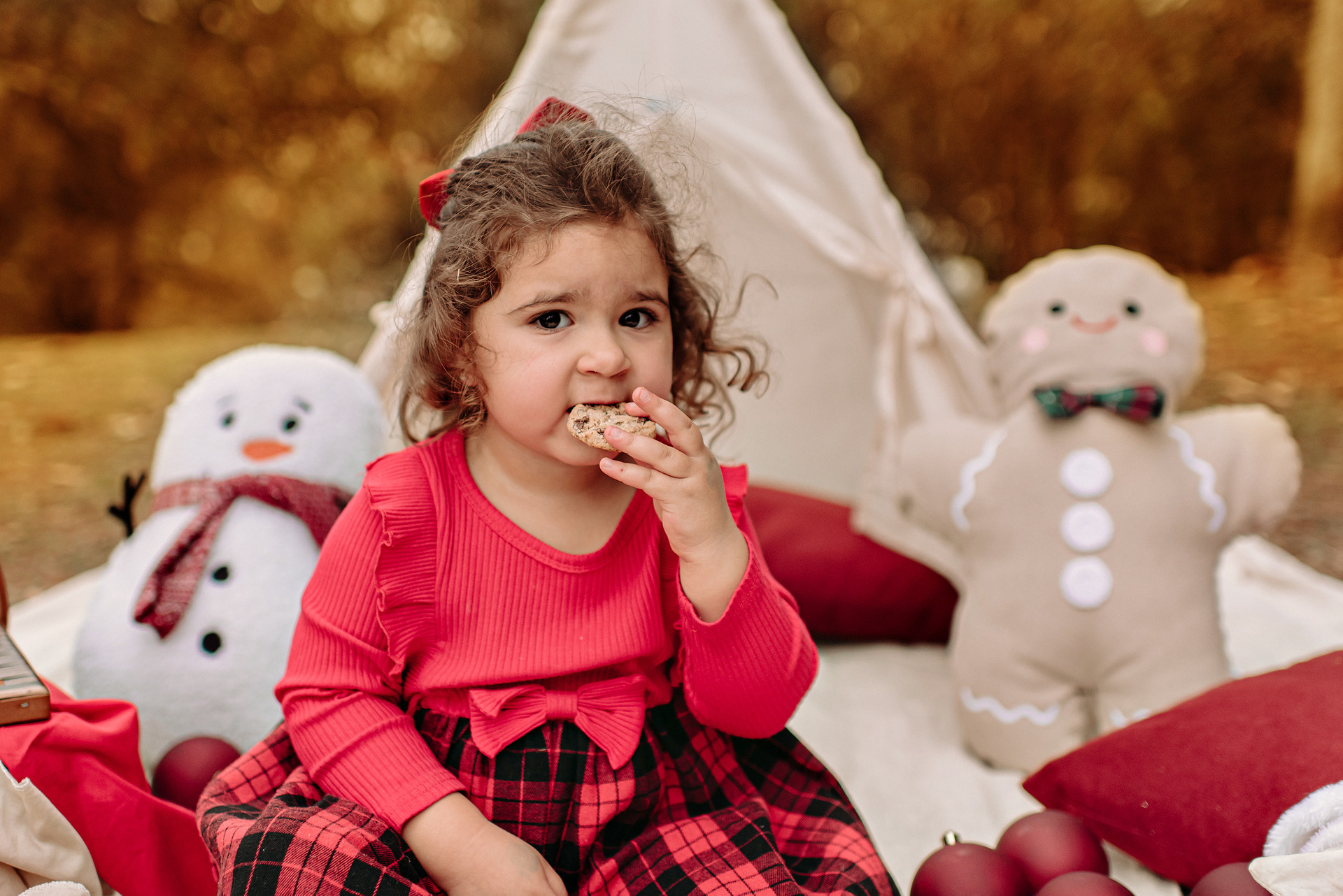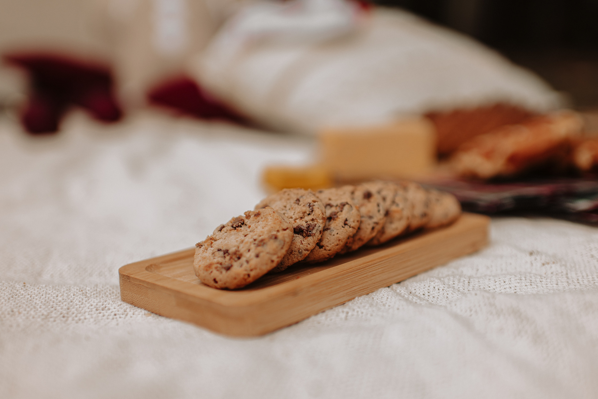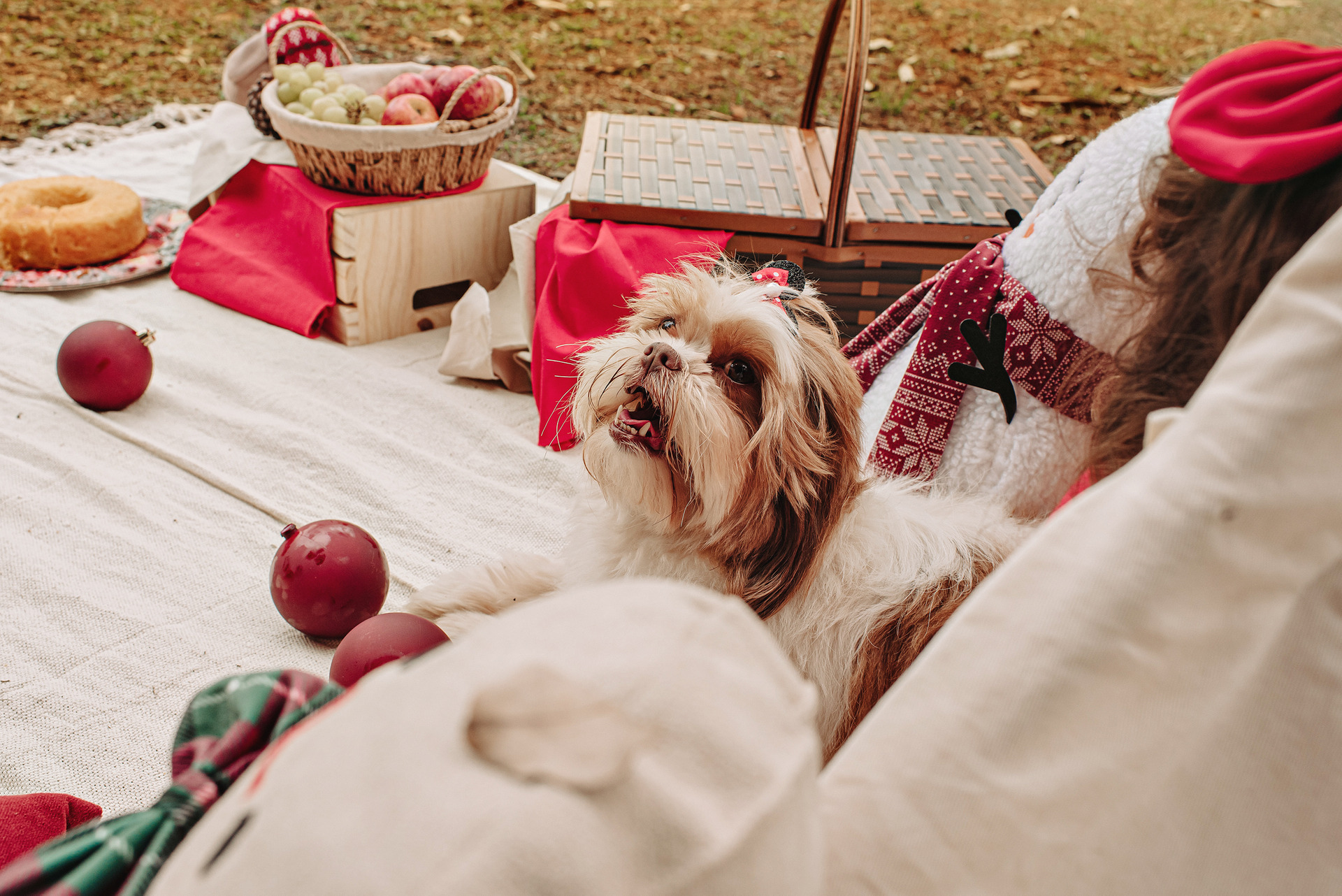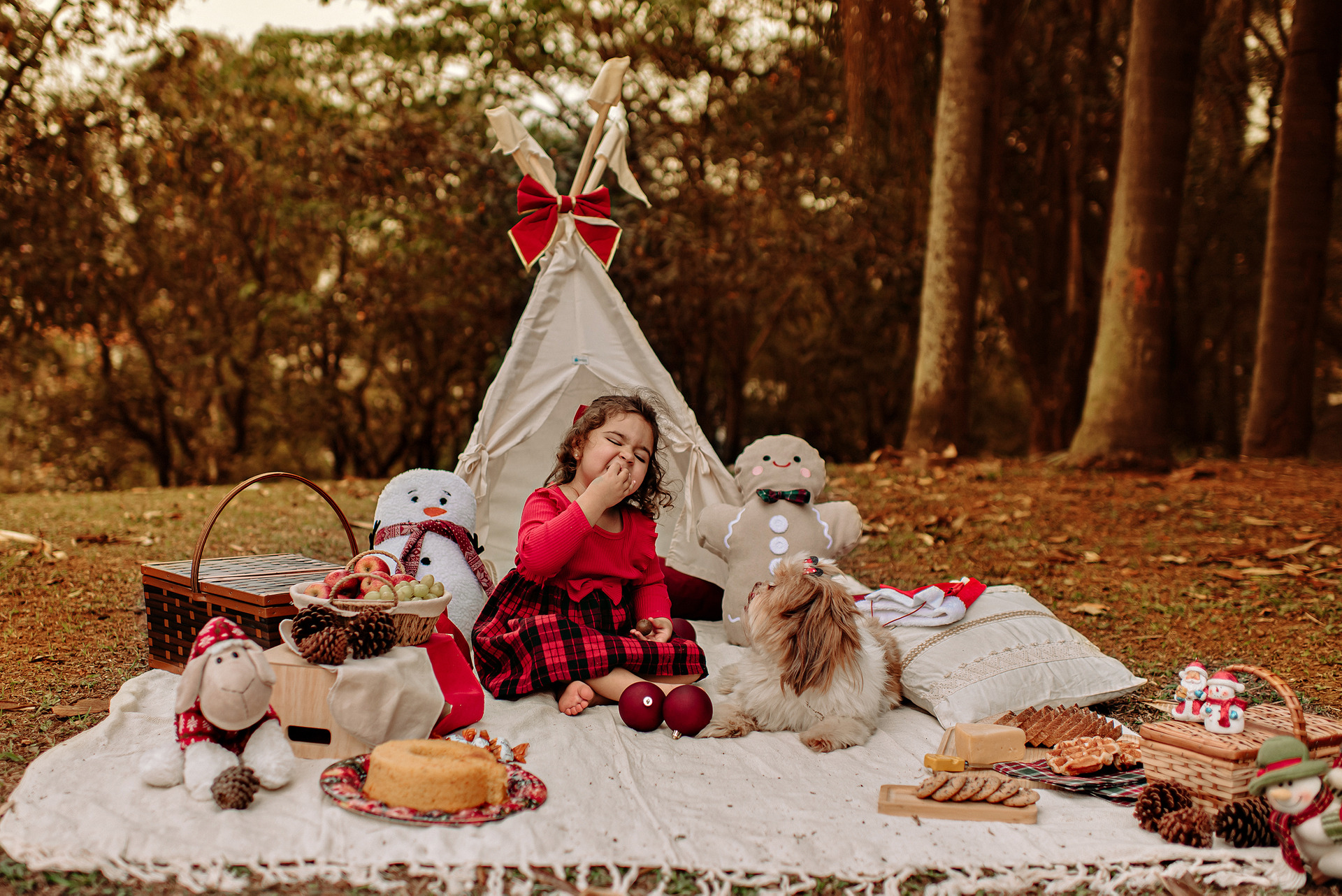 Um piquenique natalino com biscoitos, frutas e detalhes que trazem a magia dessa época.